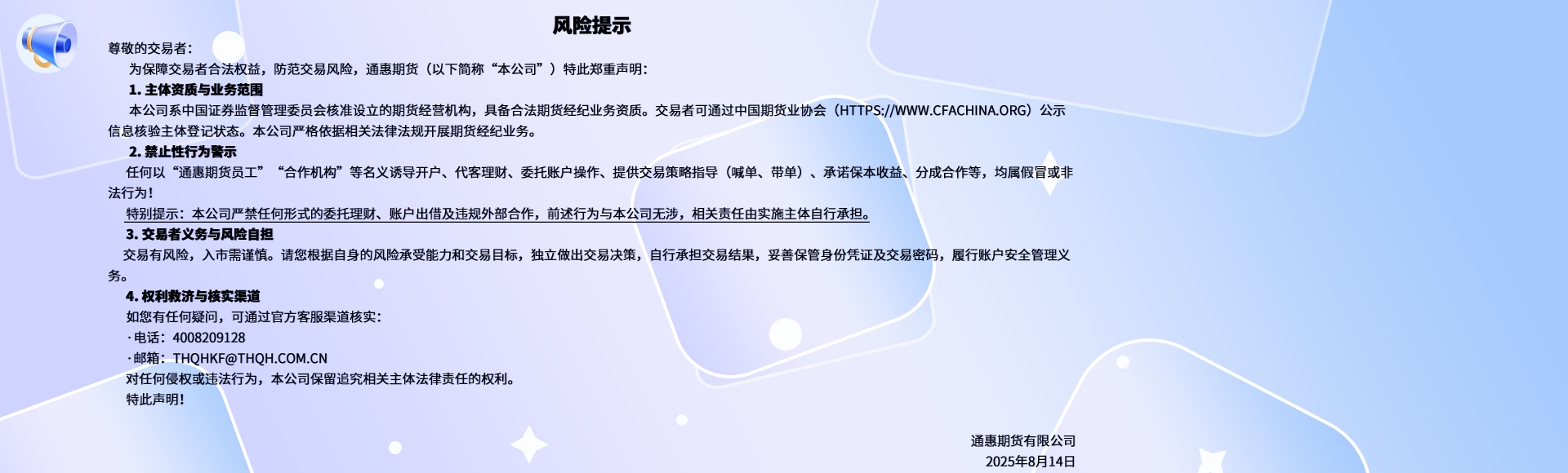 • 關(guān)于2025年國(guó)慶節(jié)、中秋節(jié)假期調(diào)整交易保證金的通知2025-09-26